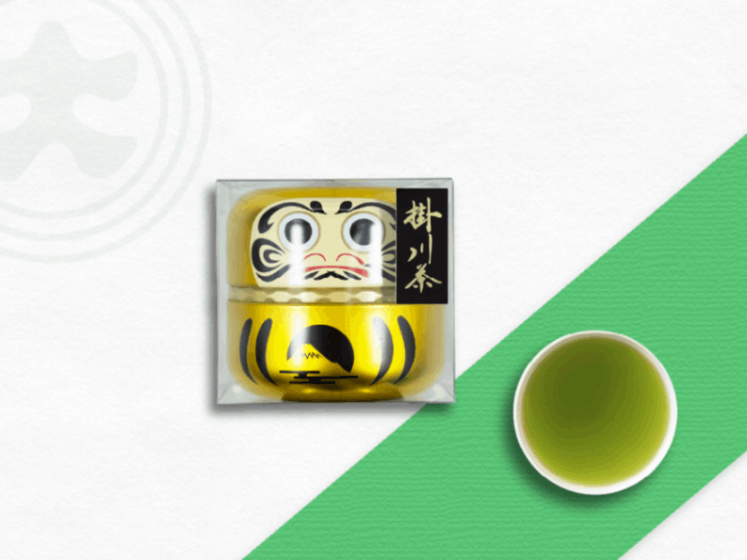 深蒸し煎茶(50g詰)をだるま缶にお入れし、クリアカートンにお入れします。